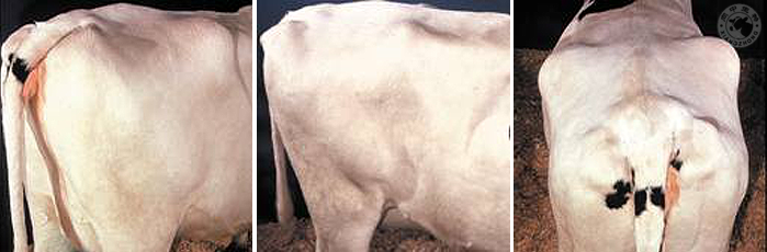 關(guān)于青年牛的體況評(píng)分,由于不斷生長,體況也一直在增加,在產(chǎn)犢時(shí)達(dá)到3.5為最佳。另外,筆者注意到由于其骨架較小,脂肪沉積程度往往被低估,體況評(píng)分時(shí)其實(shí)際評(píng)分比成母牛體況評(píng)分要低0.25-0.5個(gè)單位,建議牧場人員用手按壓,自行校正。